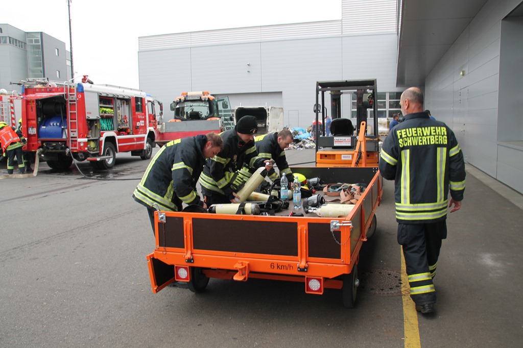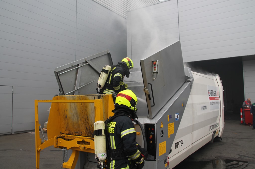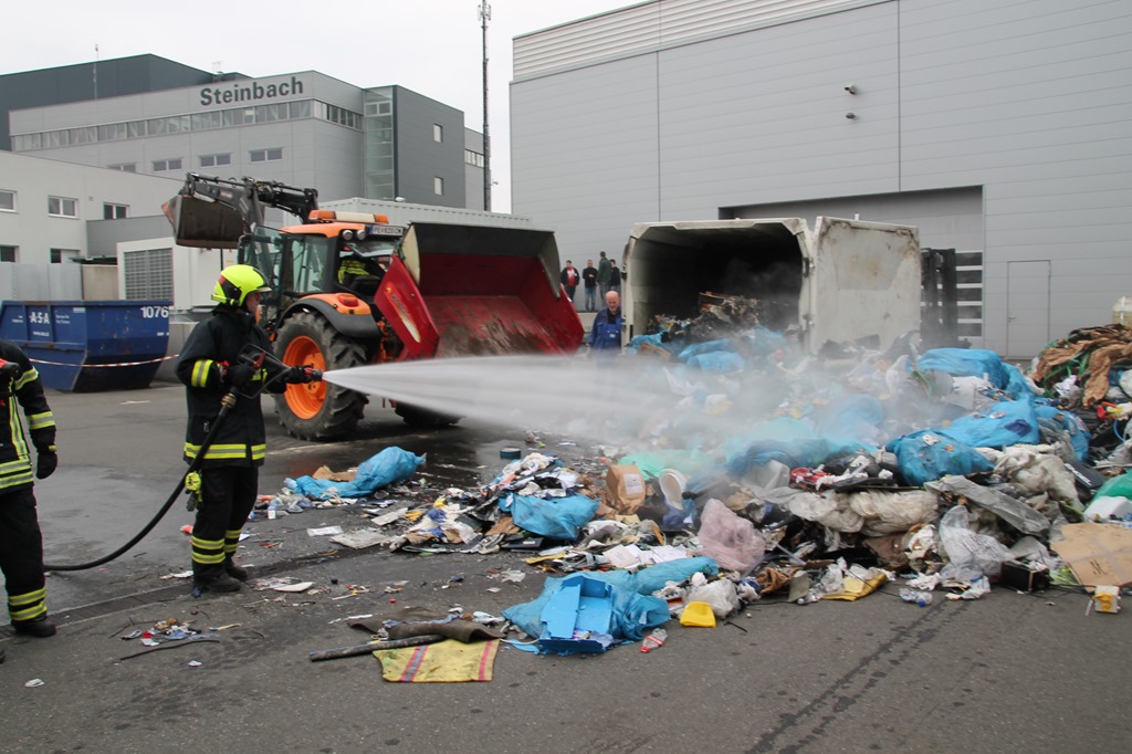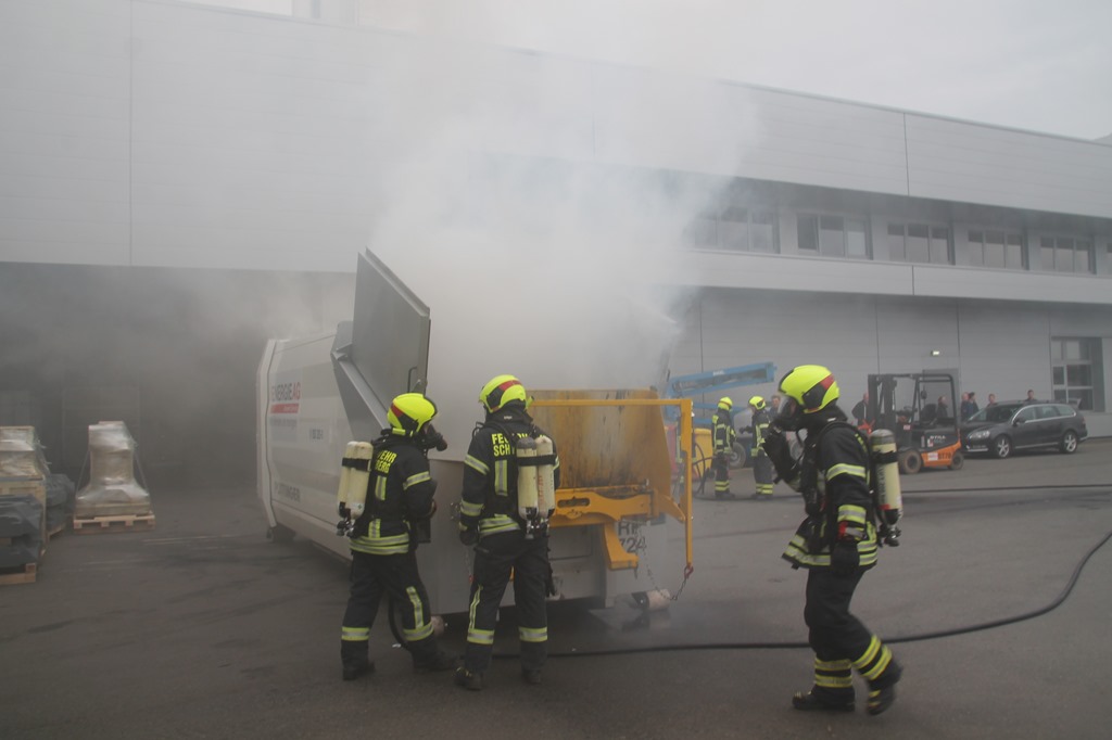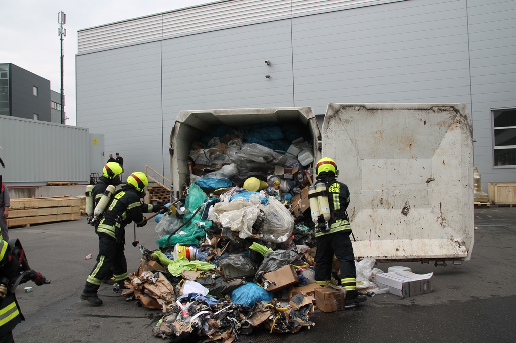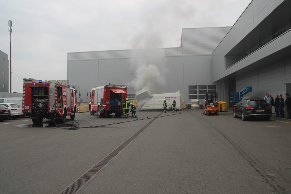 Um 10:29 Uhr wurden wir heute zu einem Containerbrand bei der Fa. Engel alarmiert. Beim eintreffen des ersten Fahrzeuges wurde der Abfallcontainer gerade von Mitarbeitern mithilfe eines Gabelstaplers aus dem Firmengebäude gebracht und somit ein größerer Schaden verhindert. Unter schweren Atemschutz wurde sofort damit begonnen den Brand mittels HD-Rohr einzudämmen. Von einem Unterflurhydranten am Firmengelände wurde eine Zubringerleitung aufgebaut. Um ein vollständiges Ablöschen zu ermöglichen musste der Container ausgeräumt werden. Dazu wurde der Traktor samt Frontschaufel vom Bauhof in Schwertberg zur Unterstützung angefordert. Nach rund zwei Stunden konnte „Brand aus“ gegeben werden. Gegen 13 Uhr konnte dann auch die Mannschaft von unserem Tanklöschfahrzeug, die für das Ablöschen letzter Glutnester vor Ort blieben, einrücken und somit war der Einsatz für uns um 13:15 Uhr beendet.