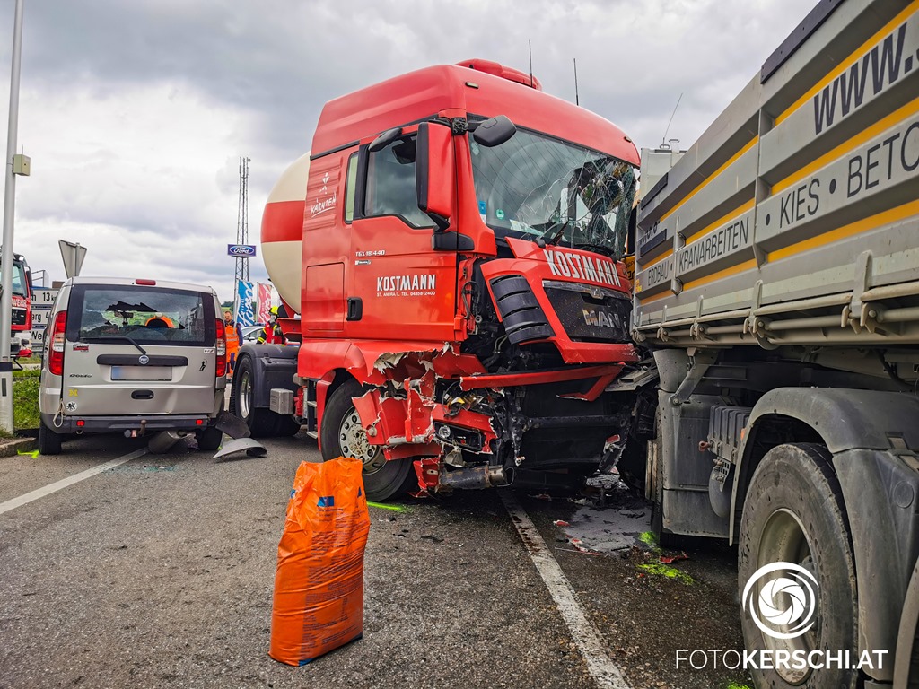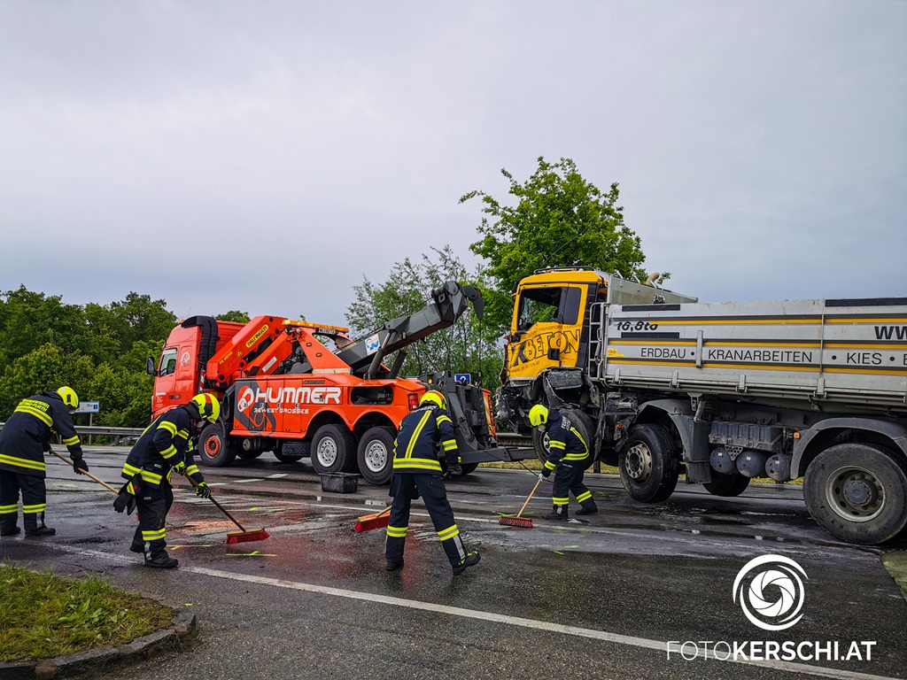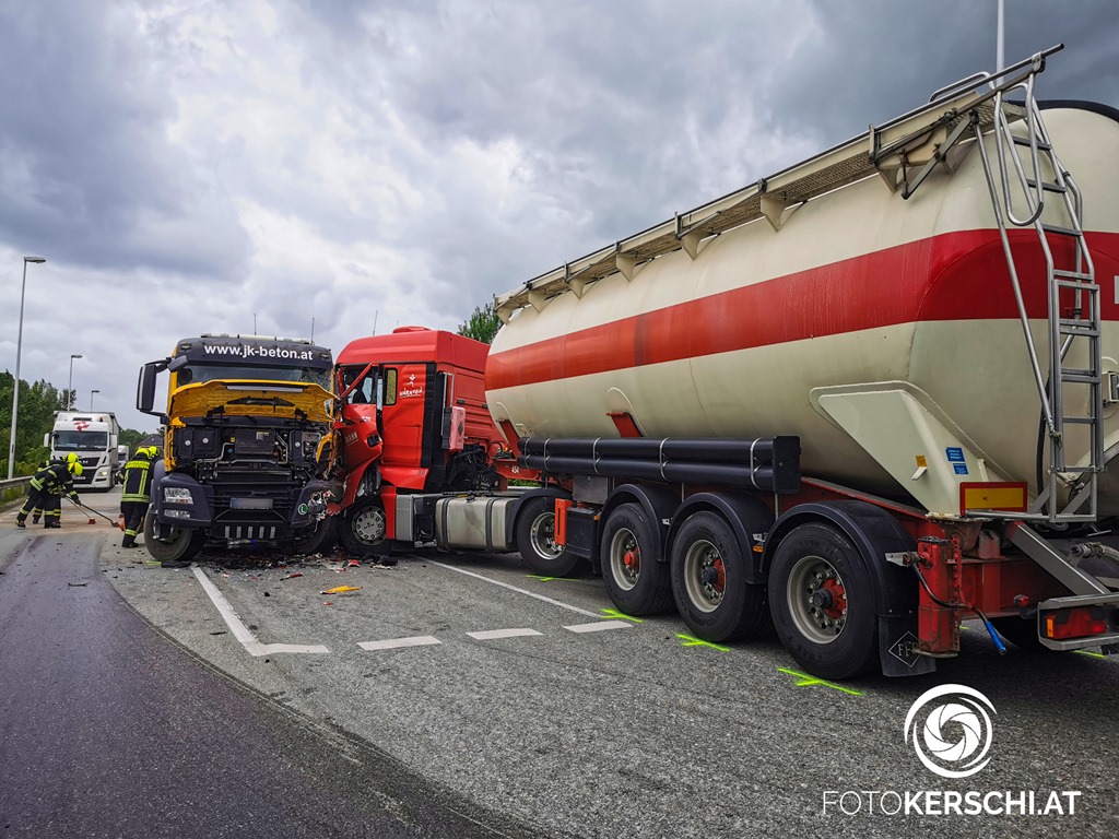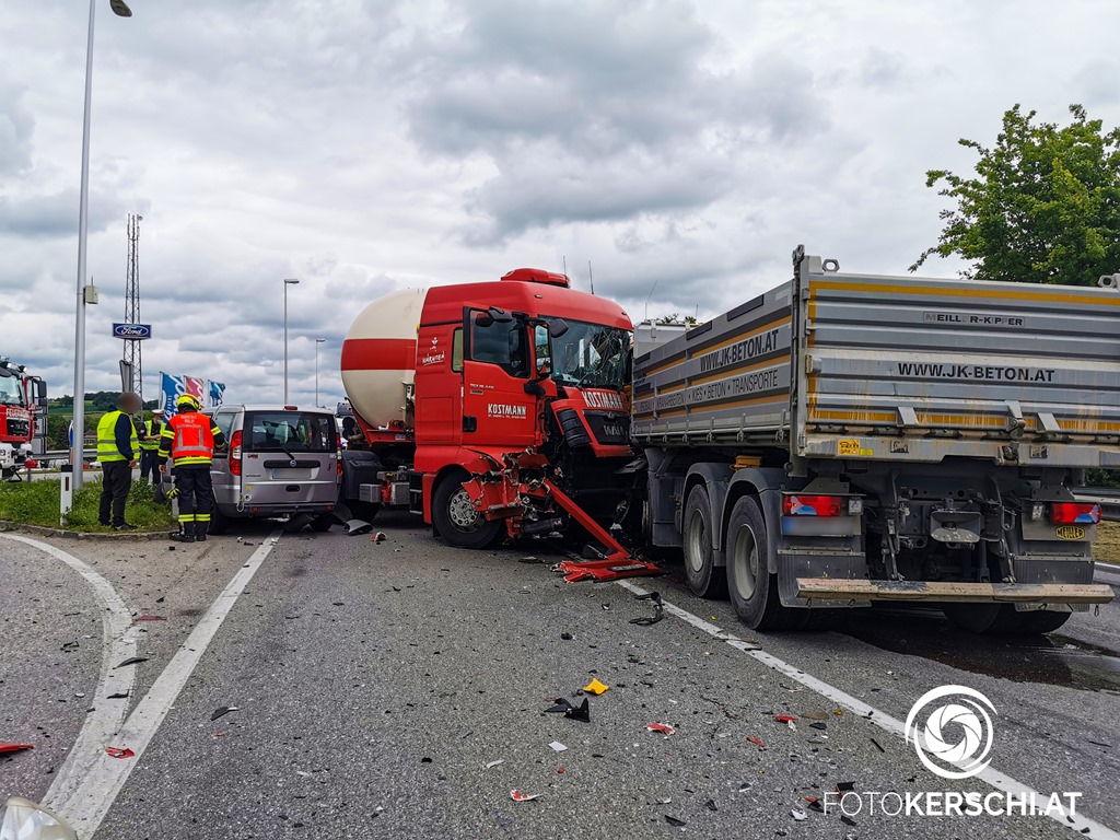 Die Alarmierung lautete für die Feuerwehren Schwertberg, Aisting-Furth und Haid, das Rote Kreuz sowie die Polizei zu einem Verkehrsunfall mit eingeklemmter Person. Am Einsatzort angekommen konnte glücklicherweise rasch Entwarnung gegeben werden da keine Personen eingeklemmt waren. Wie durch ein Wunder kamen die Lenker sowie ein Hund ohne schwerere Verletzungen davon und konnten sich alle selbstständig aus den beschädigten Fahrzeugen befreien. Alle drei beteiligten Personen lehnten Aufgrund der augenscheinlich nur leichten Verletzungen einen Transport ins Krankenhaus ab. Die Feuerwehr richtete gemeinsam mit der Polizei eine großräumige Umleitung ein. Da die Fahrzeuge allesamt nicht mehr fahrbereit waren musste ein Abschleppunternehmen sowie das Bergeunternehmen Hummer anrücken. Nach Freigabe der Polizei begannen die Einsatzkräfte damit die Unfallstelle zu Räumen. Die umfangreichen Aufräum- und Reinigungsarbeiten dauerten bis ca. 15.30 Uhr. Erst danach konnte die B3 wieder für den Verkehr freigegeben werden.