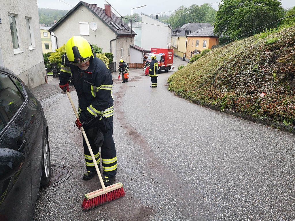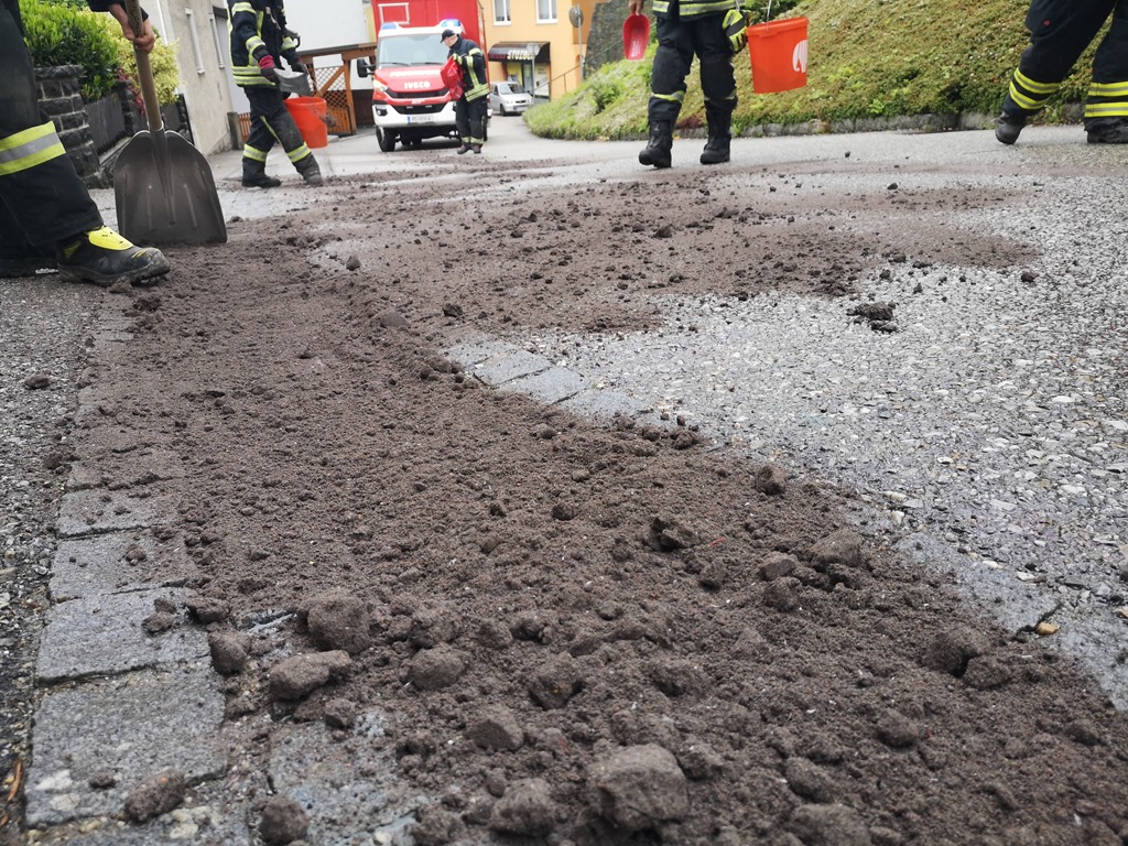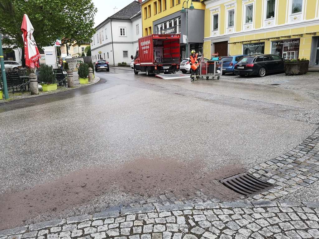 Um 17.17 Uhr wurden wir zu einer Ölspur am Marktplatz alarmiert. Am Einsatzort angekommen konnte eine kleinere Ölspur vorgefunden werden. Umgehend wurde damit begonnen die Verschmutzung mittels Bindemittel zu beseitigen. Im Verlauf des Einsatzes wurden wir über eine weitere Verschmutzung im Bereich des Unimarktkreisverkehrs verständigt. Auch diese konnte rasch beseitigt werden. Zur Absicherung wurden an beiden Einsatzstellen noch die "Ölspurtafeln" aufgestellt. Um 18.30 Uhr konnte der Einsatz beendet werden.