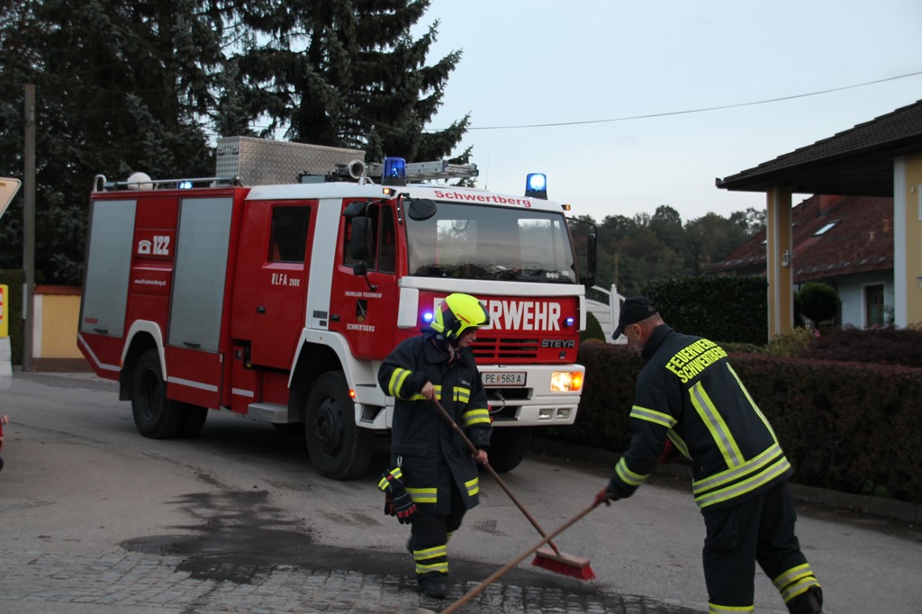Heute Nachmittag wurden wir telefonisch zu einem Ölaustritt alarmiert. Vor Ort stellten wir fest das Aufgrund eines geplatzten Hydraulikschlauches bei einem Ladekran eines LKW eine größere Menge Hydrauliköl ausgetreten war. Die Ölverschmutzung konnte mit Hilfe von Ölbindemittel beseitigt werden. Da bei dem Servicewagen des Hydrauliknotdienstes die Stromversorgung versagte stellten wir für die Dauer der Reparatur noch die Stromversorgung mittels Notstromaggregates sicher. Nach zwei Stunden konnten wir wieder einrücken.